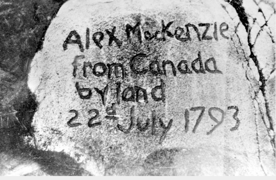 1793 Inscription by Sir Alexander Mackenzie on a rock in Dean Channel, near Bella Coola, BC, Archives A-02312