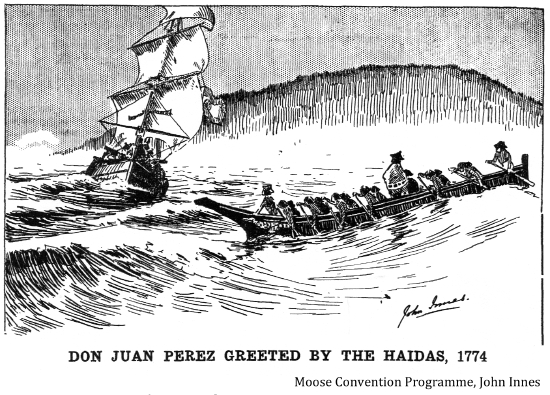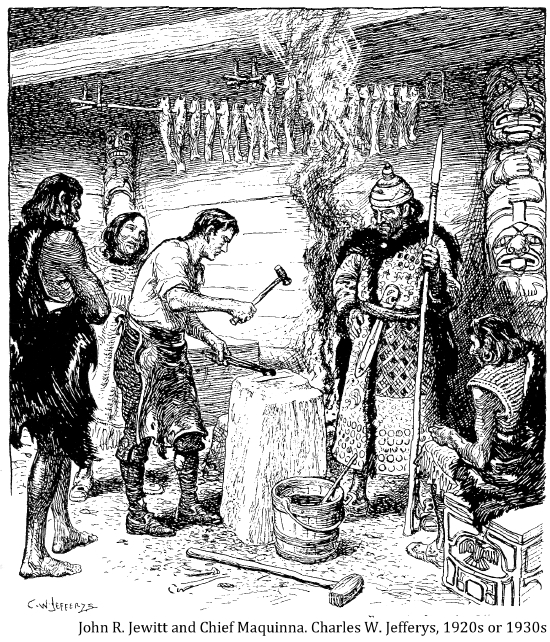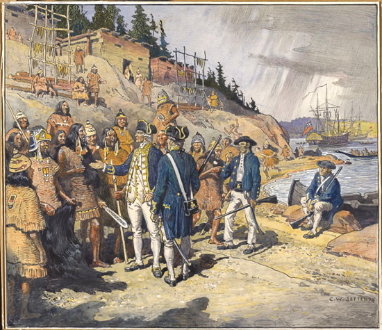 Captain Cook meets the West Coast Indians at Nootka, 1778. LAC Acc. No. 1972-26-765, Charles W. Jefferys, 1920s or 1930s