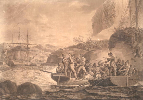The Spanish Insult to the British Flag at Nootka Sound, 1789. LAC Acc. No. R9266-3257 Peter Winkworth Collection of Canadiana, Robert Dodd, 1748-1816