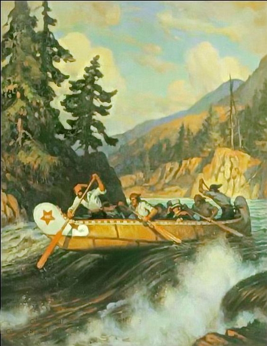 Chief Trader Archibald McDonald and George Simpson descending the Fraser River, 1828, Hudson's Bay Company Archives, Adam Sherriff Scott, ca. 1942