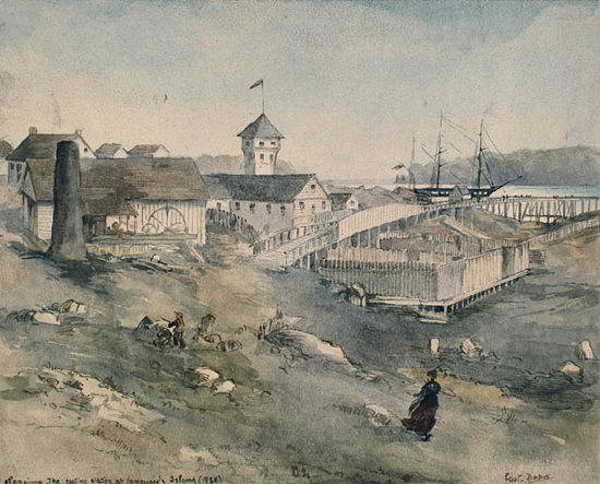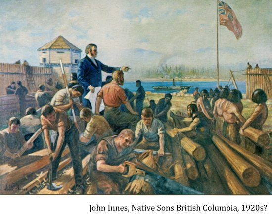 James Douglas Building the Hudson's Bay Post at Victoria, 1843, John Innes, 1925