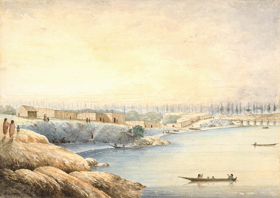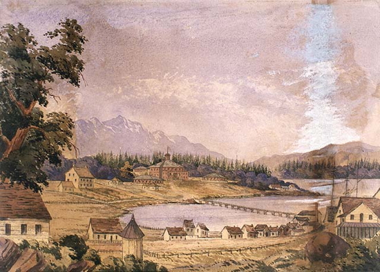 1843 A painting of James Douglas marking location for Fort Victoria, John David Kelly, BC Archives B-00245