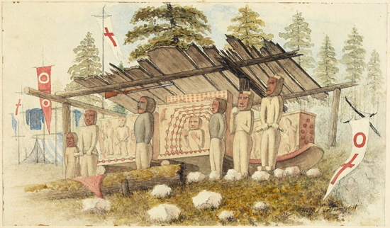 A Salish Grave, British Columbia. Une tombe Salish. LAC R9266-344 Collection de Canadiana Peter Winkworth, Edward M. Richardson, ca.1864