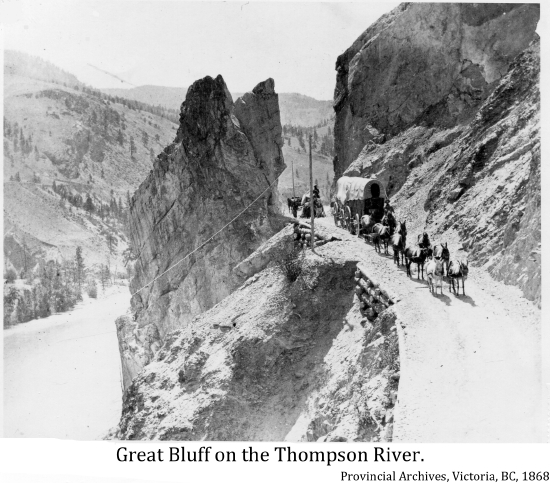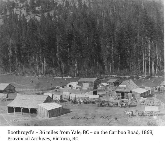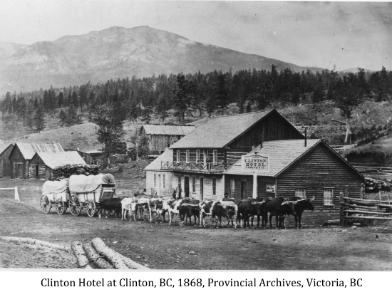 [Over 22,000 cattle were driven north from California, Oregon and Washington, via the Okanagan Valley, to the upper Fraser River and Barkerville. between 1859 and1868. Other supplies came this way until the Cariboo Wagon Road was completed.]