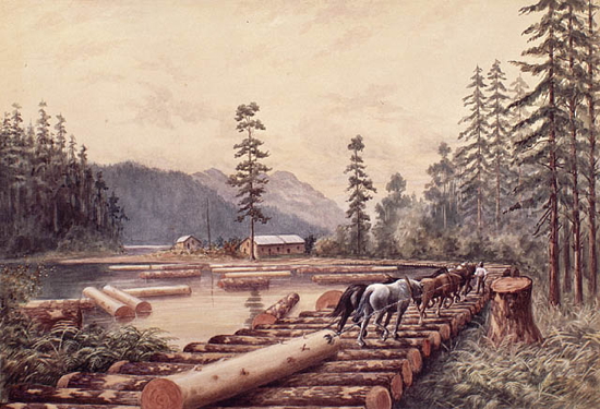 A Logger's Camp on Vancouver Island. LAC Acc. No. 1989-201-32, E. Sandys, 1880-1900