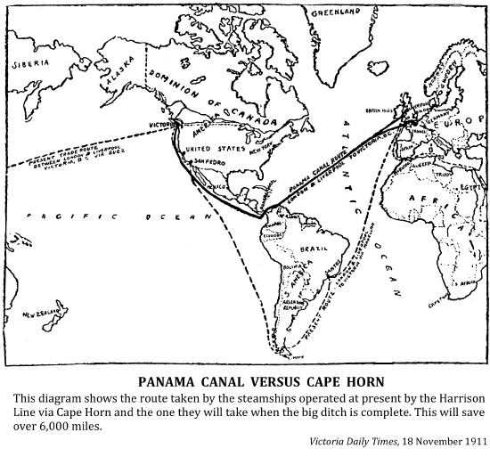 [The United States decided to build the Panama Canal in 1902. It was finished in 1914, bringing European markets much closer to BC.]