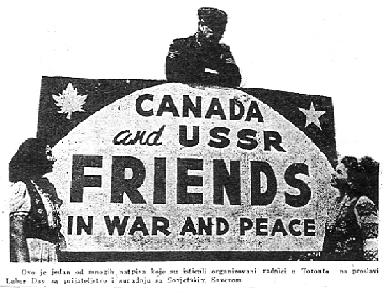1944-45 Greetings to the Soviet Heroes, Together we shall Conquer : "Greetings to the Soviet Heroes, Together We Shall Conquer". LAC, Acc. No. 1981-32-19 Source: Harry Mayerovitch, Montréal, Québec, 1944-45