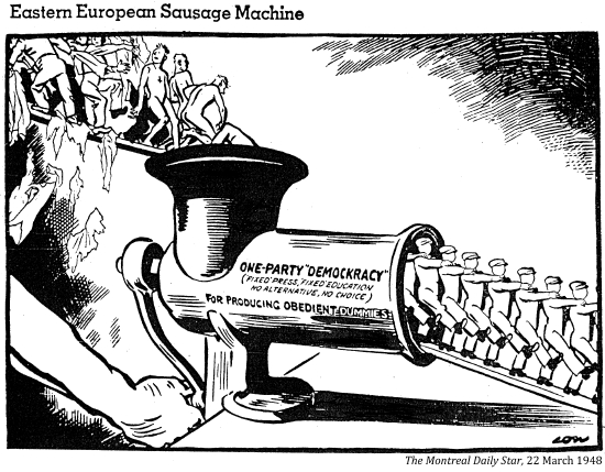 "Communism is the most subtle of all evils, because its appeal is made in the name of freedom, and it marches under the banners of Freedom. Its appeal is to the masses, whom it promises to deliver from their chains. It speaks in the name of enlarged opportunity and increased security. It is, in reality, none of these. The immediate purpose of Communism is the complete control of the individual in the name of the state. Its ultimate aim is world domination. Beneath its mask are concealed the secret police, slave labour, and the concentration camp."