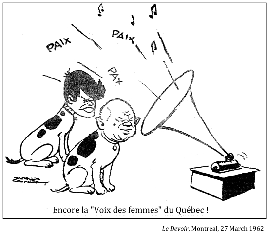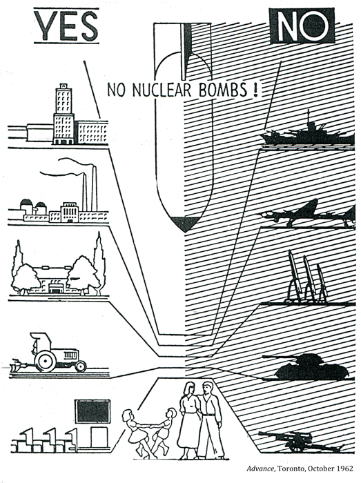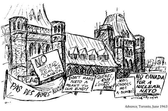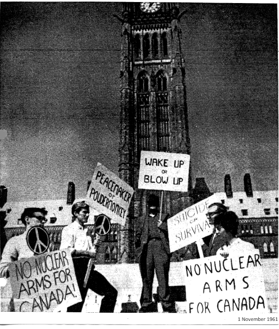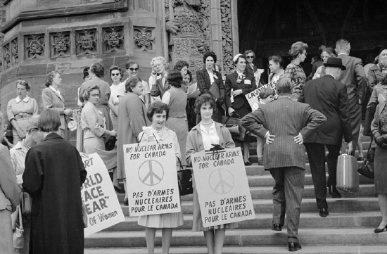 1961 Women on steps holding signs "No Nuclear Arms for Canada - Pas d'armes nucléaires pour le Canada". LAC, PA-209888, Duncan Cameron 25 September 1961