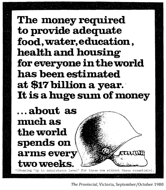 "We must recognize that, in the long run, the overwhelming threat to Canada will not come from foreign investments, or foreign ideologies, or even - with good fortune - foreign nuclear weapons. It will come instead from the two-thirds of the people of the world who are steadily falling farther and farther behind in their search for a decent standard of living."