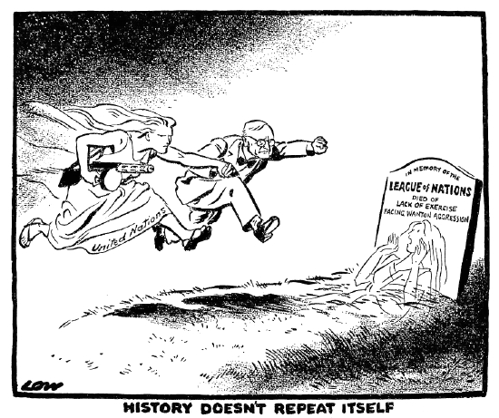 "Without sacrificing the universality of the United Nations, it is possible for the free nations of the world to form their own closer association for collective self-defence [North Atlantic Treaty Organization] under article 51 of the charter of the United Nations . . . the formation of such a defensive group of free states would not be a counsel of despair but a message of hope."