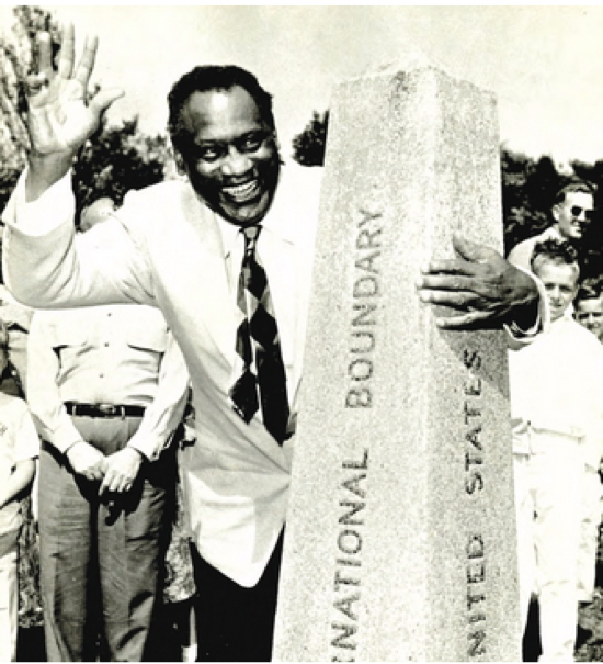 The US State Department prevented the great African-American Paul Robeson from entering Canada because he called for world peace, nuclear disarmament and was critical of American racial policies. He gave a concert at the Peace Arch Park, 24 July 1955, BC. Pacific Tribune Archive, SFU
