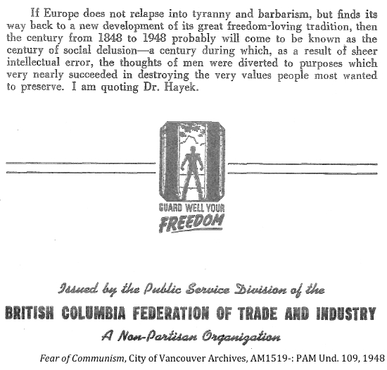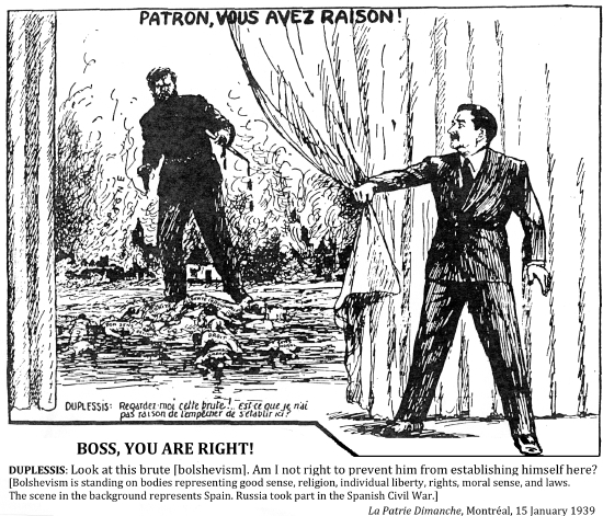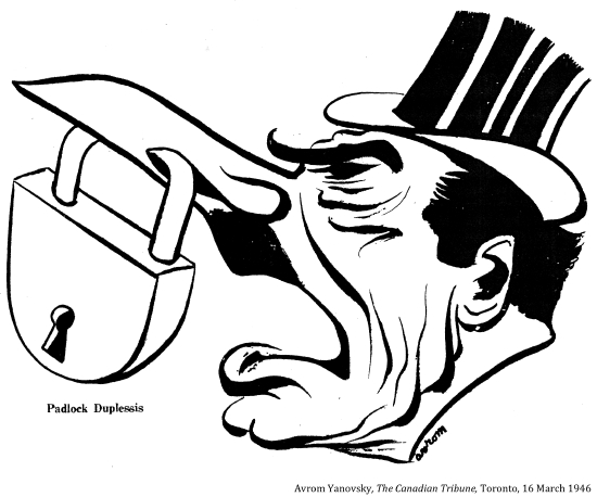 Not at all. All it says is that “it shall be illegal for any person, who possesses or occupies a house within the province, to use it or make use of it to propagate Communism or Bolshevism by any means whatsoever.” When asked for a definition in the Provincial Assembly, Duplessis answered that “Communism can be felt” and that “any definition would prevent the application of the law.” …