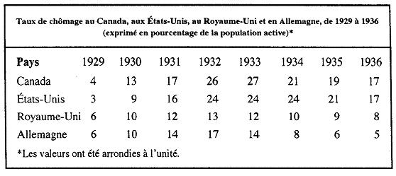 taux de chômage relevés au Canada, aux États-Unis, au Royaume-Uni et en