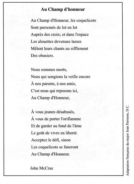 10. Ce poème de John McCrae reflète l'opinion d'un :