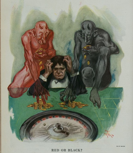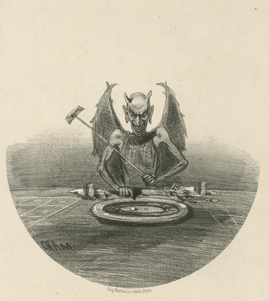 Devil seated at a gambling table, satirical print, 1860 to 1870, British Museum, Public domain, via Wikimedia Commons