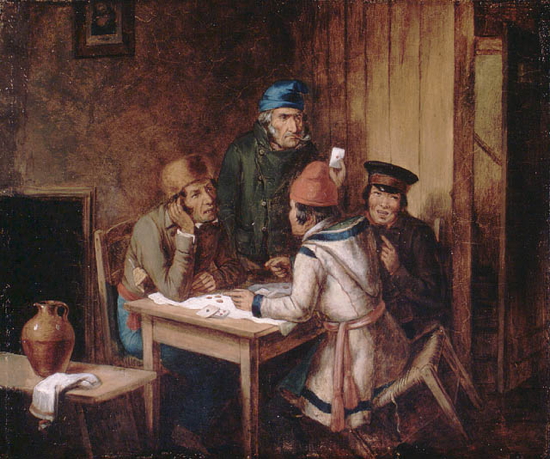A Game of Cards. Partie de cartes. Corneilius Krieghoff, LAC C-011003, 1848