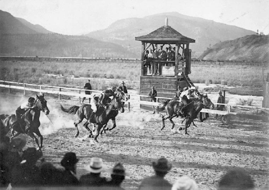 Horse races on Main Street in Lillooet, VPL 20708, 1 July 1919