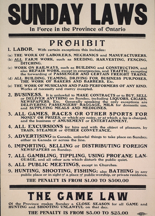 Sunday laws in force in Ontario, Toronto Reference Library 1911. Sunday Laws. 5, 1911