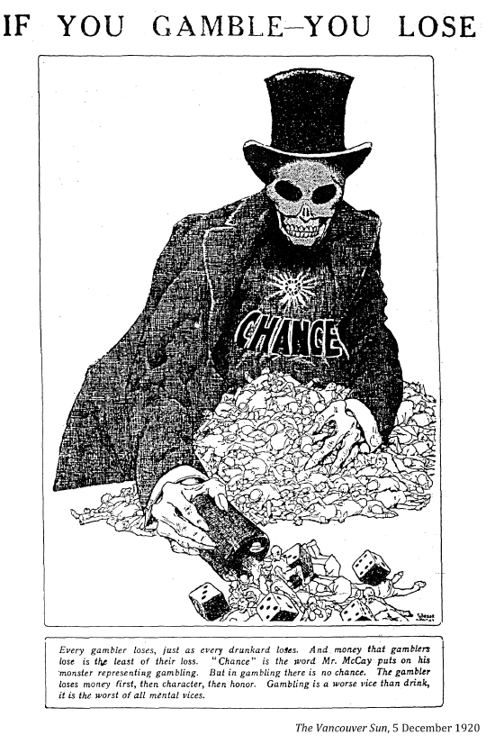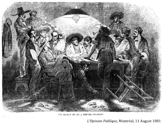 "These fools [gold rush miners] . . . have learnt that the chances are always so thoroughly in favour of the gaming-house proprietors that the loss of the gambler's money and the gain of the gaming-house proprietor is only a question of time… a man might as well chuck is gold back into the creek as pitch it on the gaming table; gaming is the miners' curse all the world over… Professional gamblers track the successful miner as the carrion crow scents the dead on a battlefield."