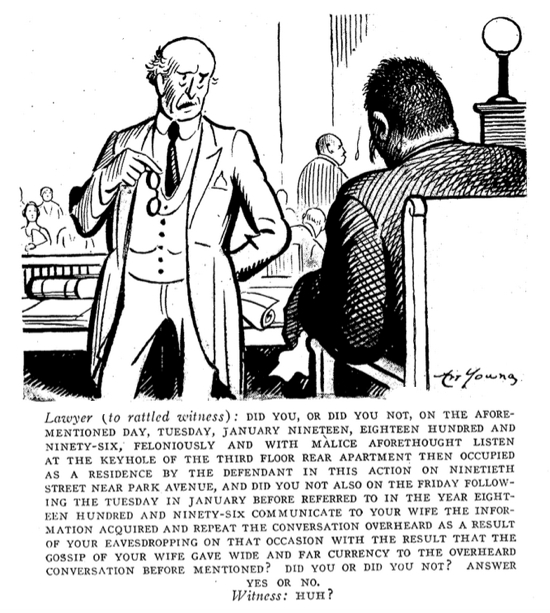 BILL TAPEDUR, LE FOREMAN: We have a question to ask. The evidence shows that the prisoner shot the victim six times and only hit him with the last shot. Are there no laws against such bad shooting?