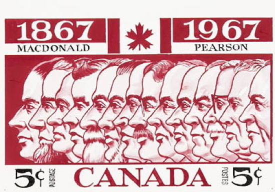 1867-1967, MacDonald, Pearson. LAC, Copyright: Canada Post Corporation, 1966?