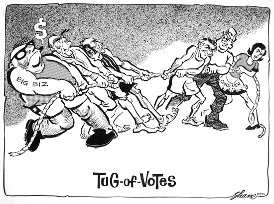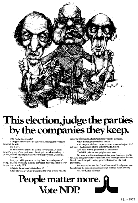 George Shane, Big Biz, Robert Stanfield (Conservative), Pierre Trudeau (Liberal) versus David Lewis (NDP), Labour, Consumer