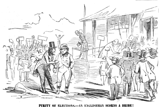 "The foundation of party government is bribery, is it not? Men are party men for the spoils. They support the government for the time for the sake of the spoils. If a man 'kicks' and gives and independent vote against the party he loses their patronage, does he not? Is not bribery the corner stone of party government?"