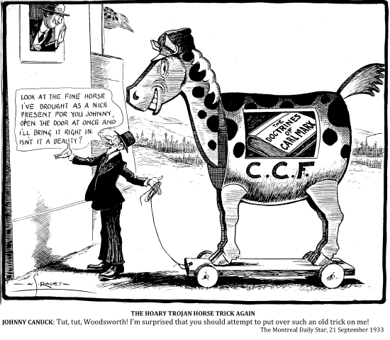 "We do not believe in change by violence. We consider that both the old parties in Canada are the instruments of capitalist interests . . . who finance them."
