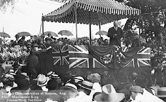 Hon. W.L. Mackenzie King at a Liberal Party rally during the federal election campaign. LAC PA-210353, William A. Gordon, 15 August 1911