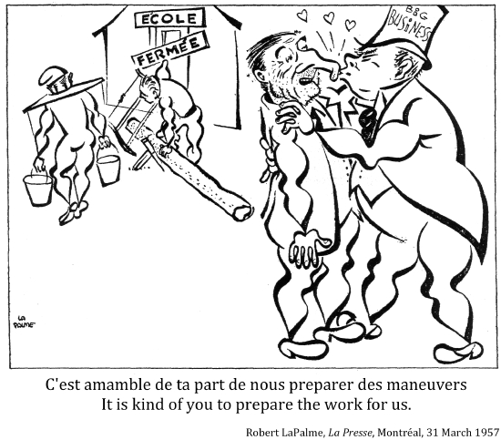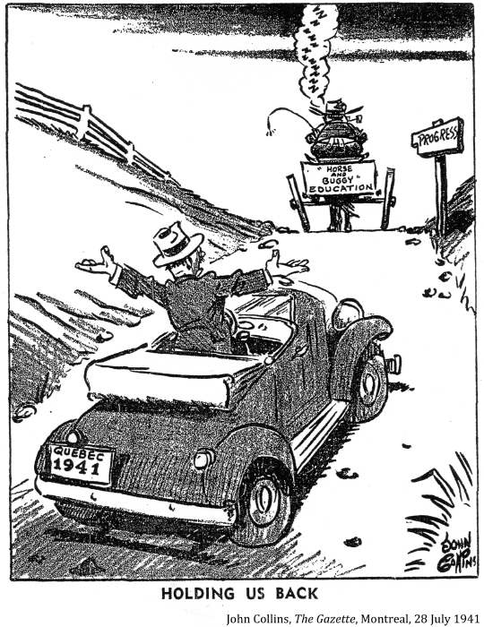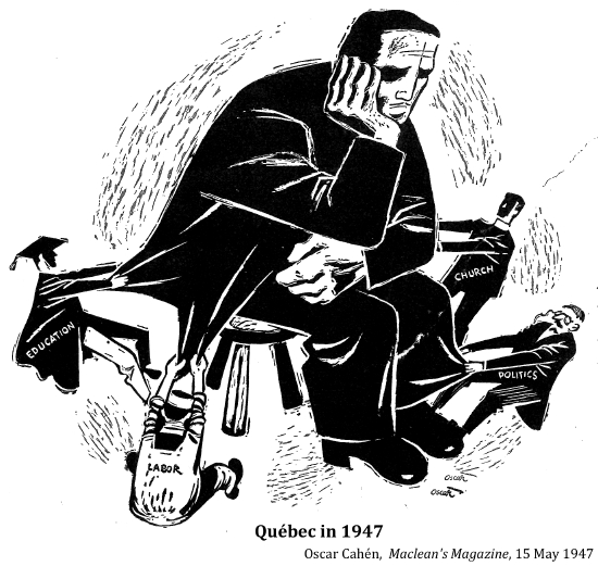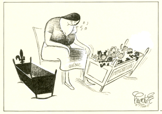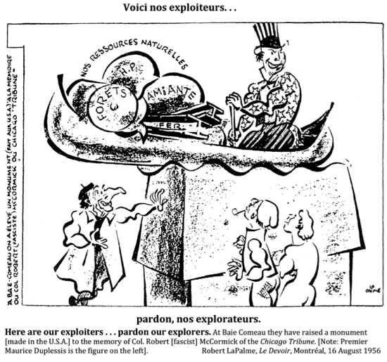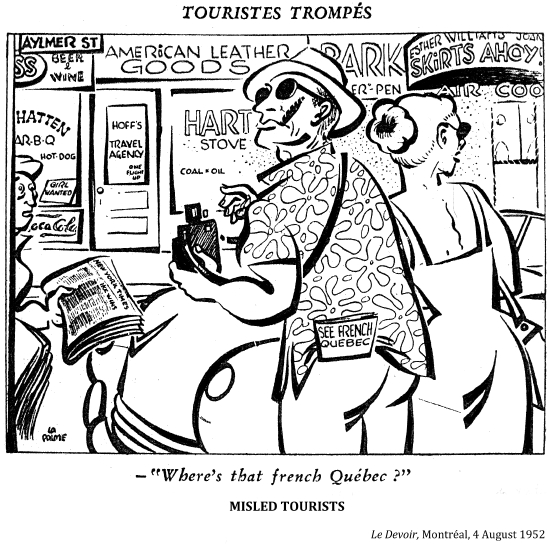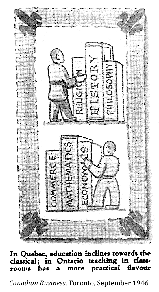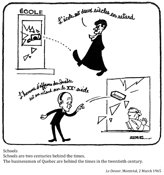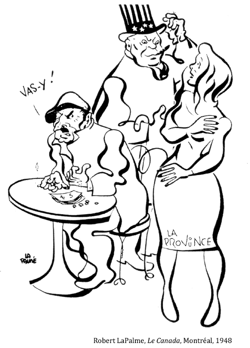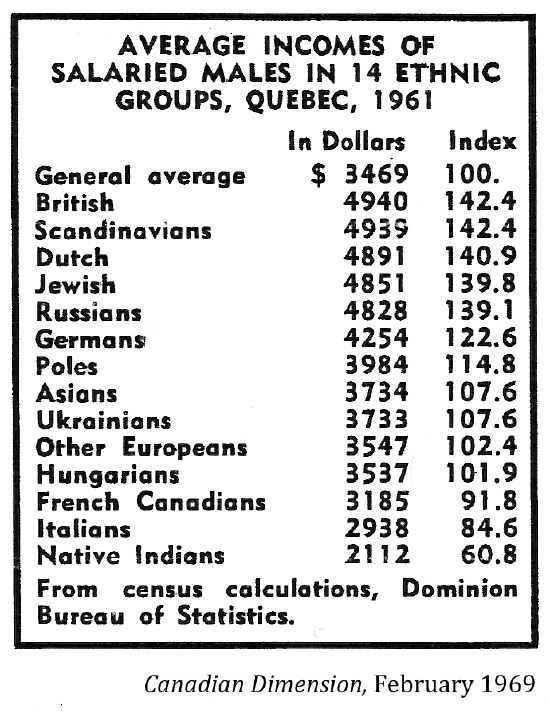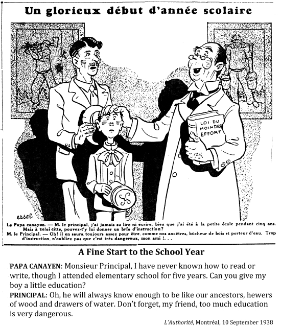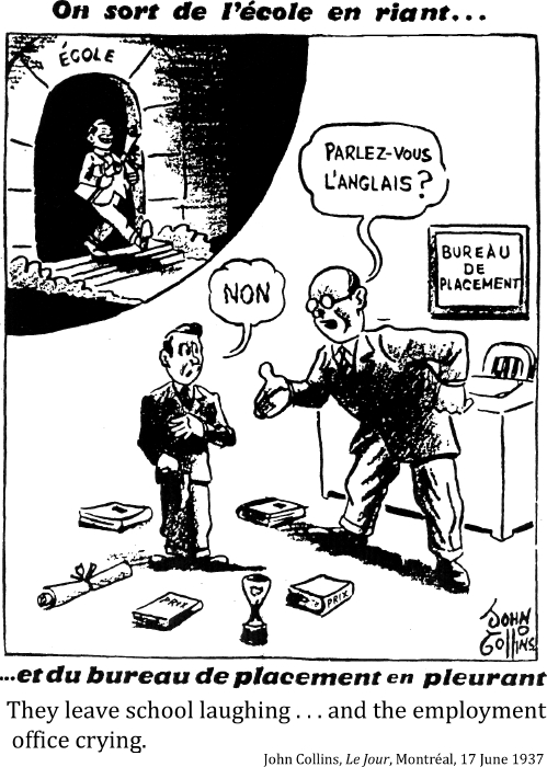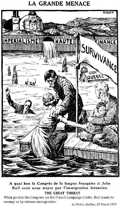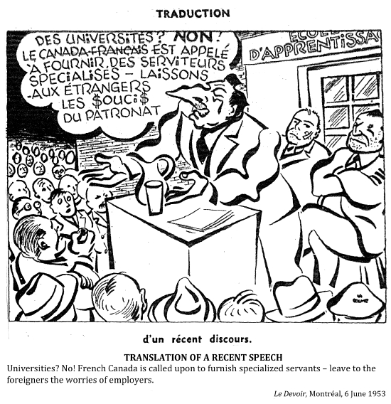 "The next generation will no longer find it natural . . .that the external appearance of our own streets and highways is English; that everyone who is rich speaks English and everyone who is poor speaks French; that four French Canadians speak English to please one Englishman who does not deign to learn their language; that large industries and businesses are English and that the little shops devoted to small businesses or to ruin are French, or rather bilingual; that the big firms exploiting our forests, our mines, our fisheries, our waterfalls, etc. provide profits and influential positions to foreigners while they leave to our own people the lowliest jobs and pitiful wages; that we earn five dollars more per week when we go to the United States, deserting our fighting role here and almost certainly anglicizing our family."