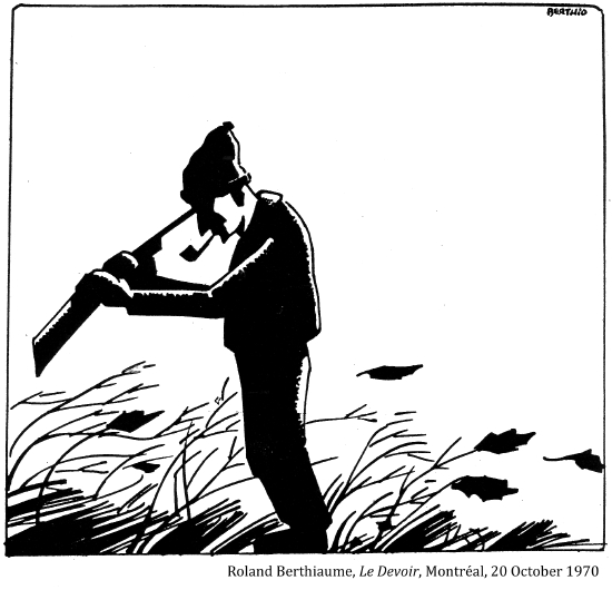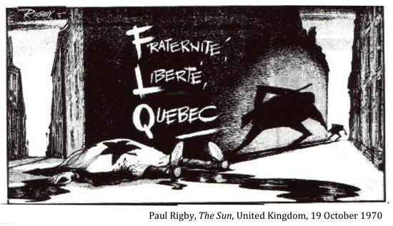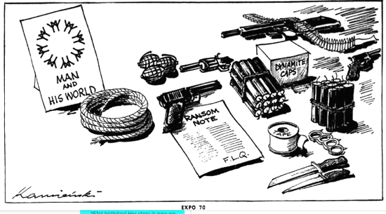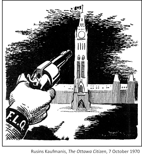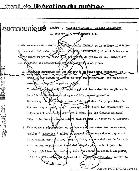 "The Minister of Employment and Immigration... was strangled by the Félquist [FLQ] revolutionaries on Saturday night [October 17]."