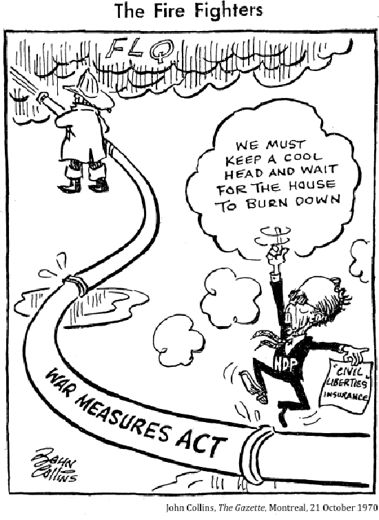"There was no secret knowledge that explained the imposition of War Measures . . . It was Tommy Douglas of the NDP who stood in the House, day after day, and hammered the government for suspending civil liberties . . . Tommy Douglas showed courage of the highest order."