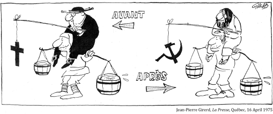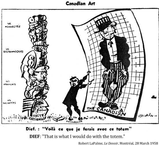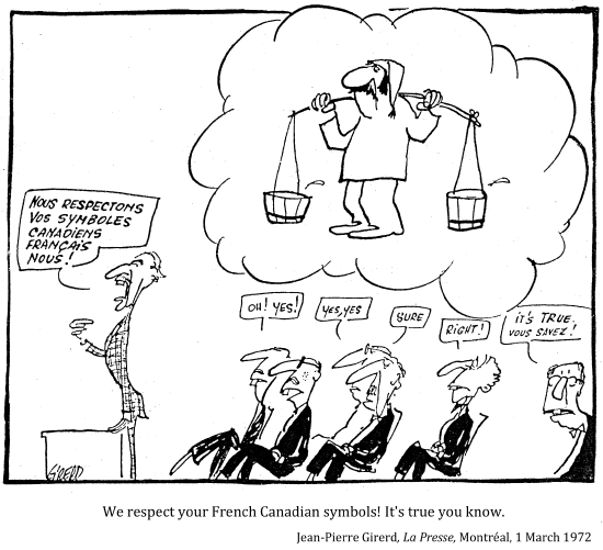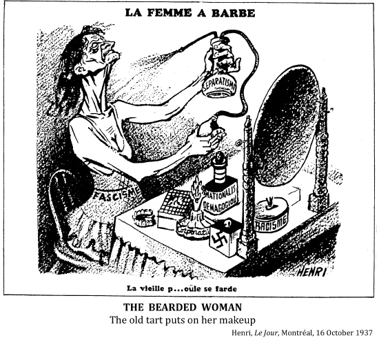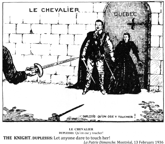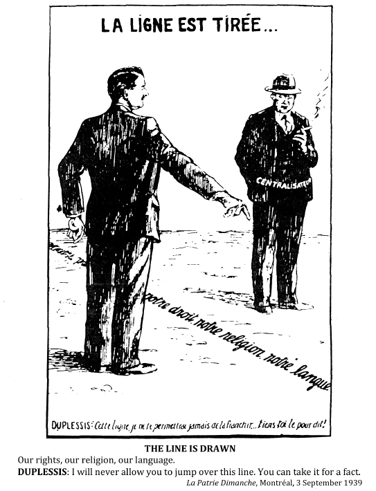 "That is why our nationalism, to oppose a surrounding world that was English-speaking, Protestant, democratic, materialistic, commercial, and later industrial, created a system of defence which put a premium on the contrary forces: the French language, Catholicism, authoritarianism, idealism, rural life, and later a return to the land."