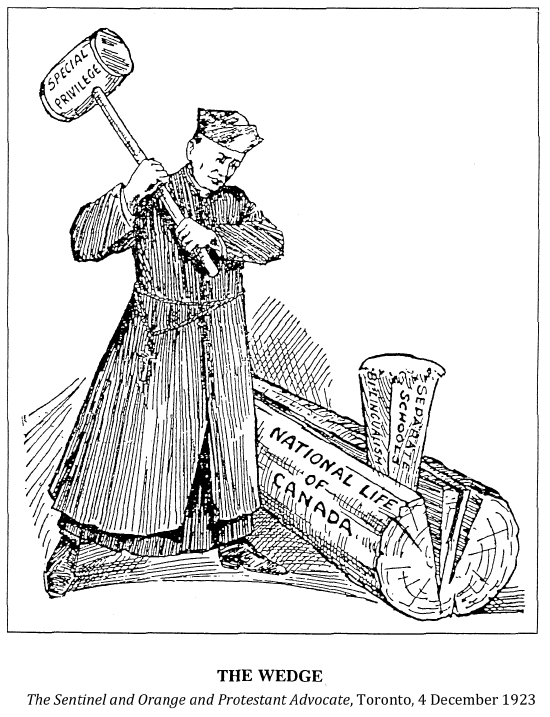 "The Manitoba schools question was an elaborate conundrum that set everyone arguing – Church versus State, provincial rights versus federal rights, Catholic versus Protestant, French versus English."