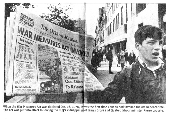 Trudeau: "Well, just watch me... Yes, I think the society must take every means at its disposal to defend itself against the emergence of a parallel power which defies the elected power in this country and I think that goes at any distance."