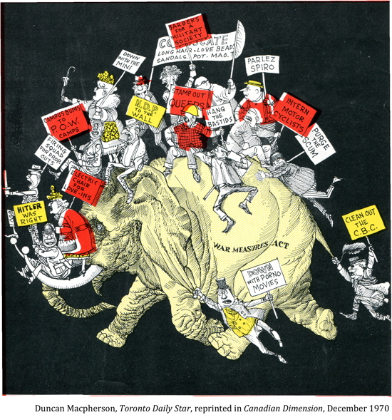 "But, Mr. Speaker, we are not prepared to use the preservation of law and order as a smoke screen to destroy the liberties and freedom of the people of Canada... The government, I submit, is using a sledgehammer to crack a peanut. This is overkill on a gargantuan scale... the government has panicked."