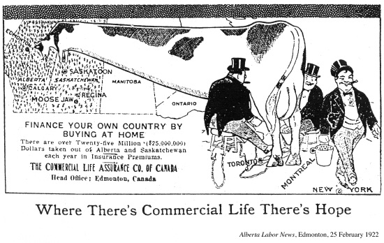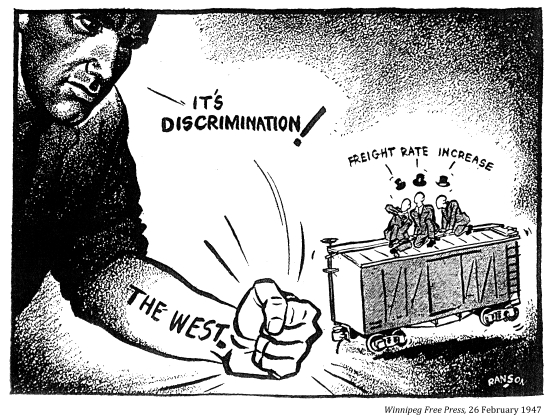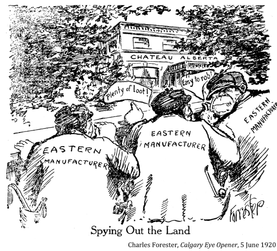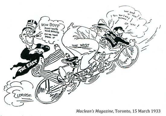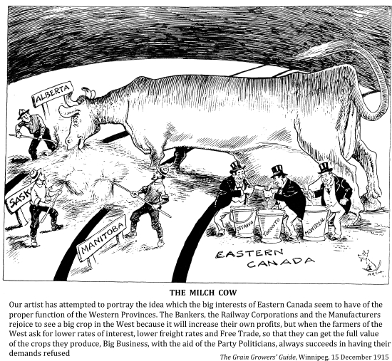 "The West has always felt that it has been dominated economically by the powerful moneyed interests of Eastern Canada, and that, in the clutch, its interests will inevitably be sacrificed to Eastern Industry and Money."