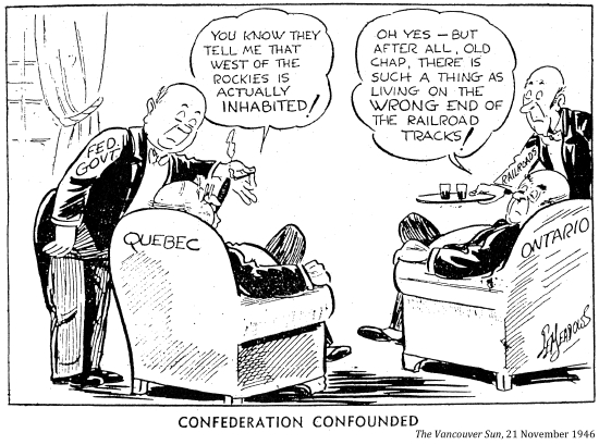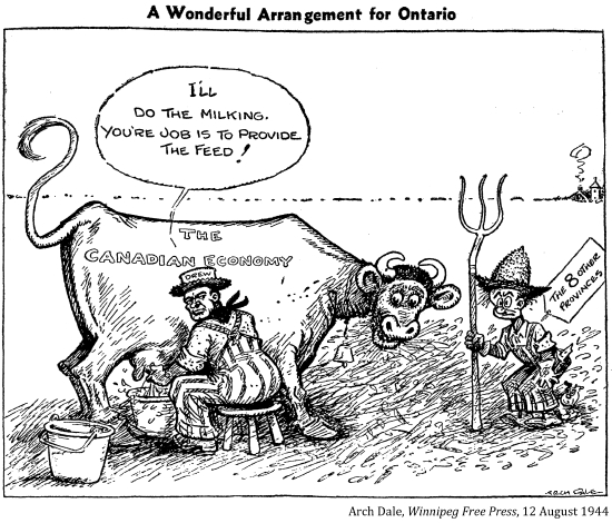 "The dominance of eastern Canada over western Canada seems likely to persist. Western Canada has paid for the development of Canadian nationality, and it would appear that it must continue to pay. The acquisitiveness of eastern Canada shows little sign of abatement."