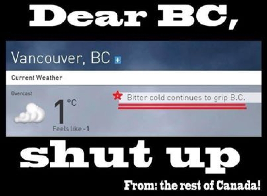 "As a British Columbian, I prefer to call British Columbia the True West, Alberta, Saskatchewan and Manitoba are the Near East, Ontario and Quebec the Middle East, and the Atlantic provinces the Far East."