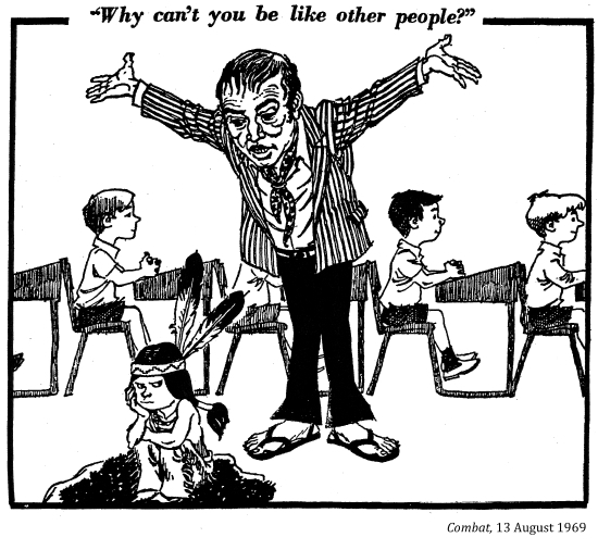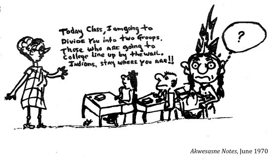 "The history of Canada was written by the oppressors, the invaders of this land. Their lies are perpetuated in the educational system of today. By failing to expose the true history of this decadent Canadian society, the schools facilitate our continued oppression. Therefore, we want an education that teaches us our true history and exposes the racist values of society."