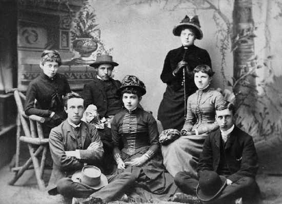 Unidentified group except for Archibald Lampman (in hat) and Duncan Campbell Scott. Groupe de personnes non identifiées, sauf en ce qui concerne Archibald Lampman (coiffé d'un chapeau) et Duncan Campbell Scott. LAC Jarvis/Harry Orr McCurry/Library and Archives Canada/C-056072, 1906?