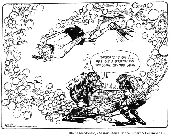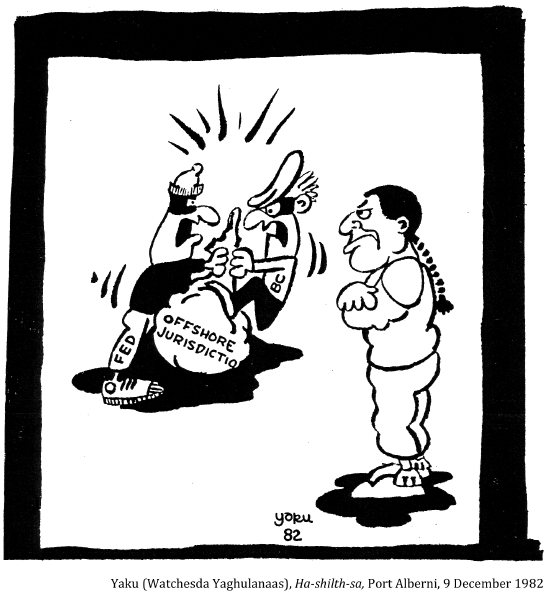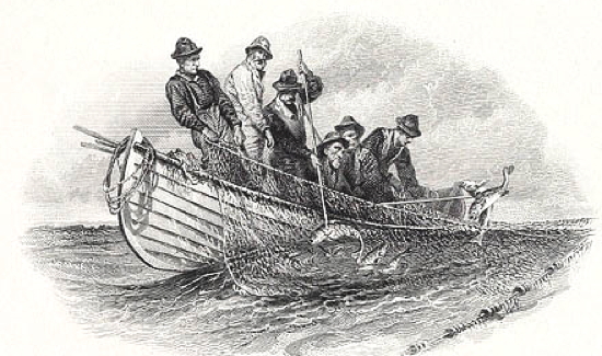 Jimmy Sewid and other fishermen from 'Namgis First Nation pulling in a fishing net. LAC /e011051640, Canada. Dept. of Manpower and Immigration