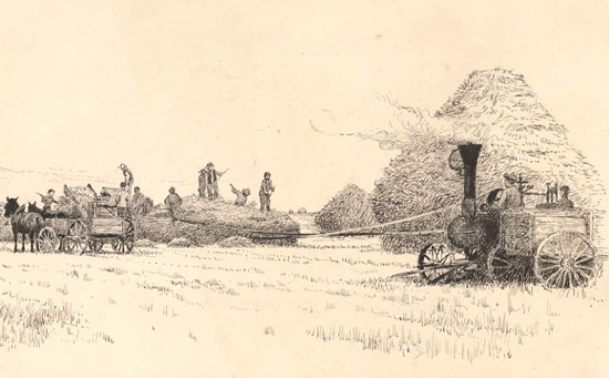 Threshing wheat on the plains, Manitoba, n.d. LAC Acc. No. 1948-59-2