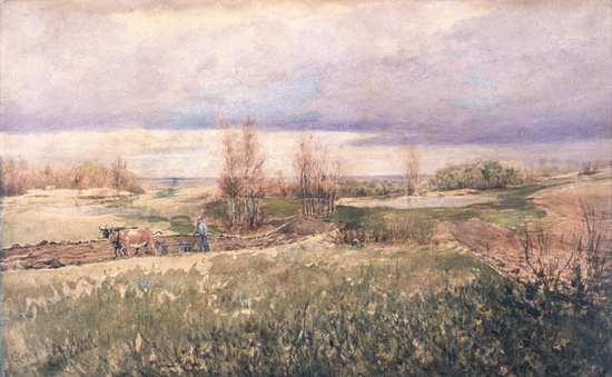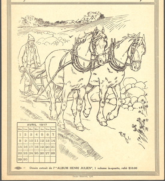 Ploughing - April. LAC, Acc. No. 1984-164-36 Source: Mr. Laurent Allard, Laval, Québec, Henri Julien, 1880-1908