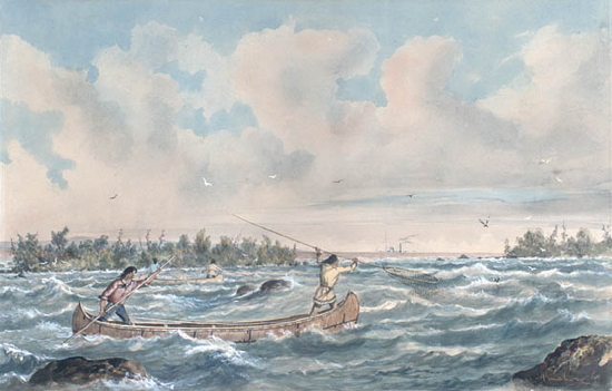 Fishing at Sault Ste. Marie. Pêche à Sault-Sainte-Marie. LAC, Acc. No. 1981-55-6, William Armstrong 1869