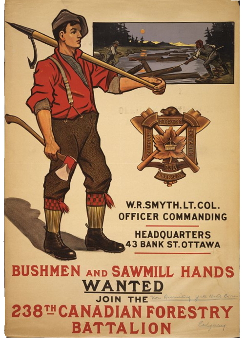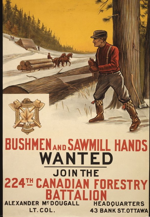 Bushmen and Sawmill Hands Wanted, Ottawa, Library of Congress LC-USZC4-12675. 1915