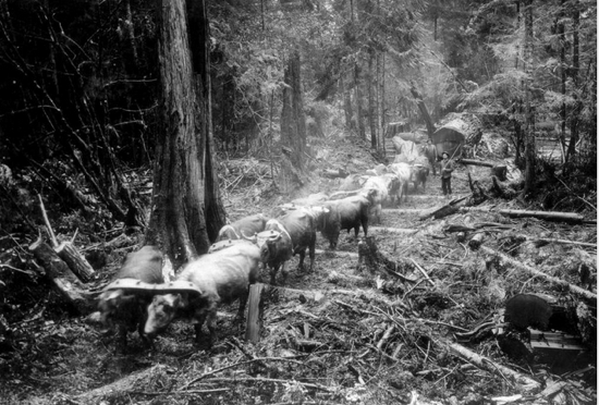 Hauling Logs By Oxen, 19—, BC Archives NA-06524