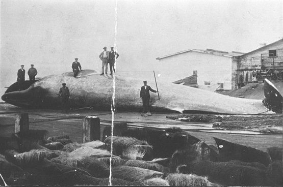 De´pec¸age d'une baleine au quai de la Quebec Steam Whaling Company, Sept-I^les, 1910, National Archives of Quebec