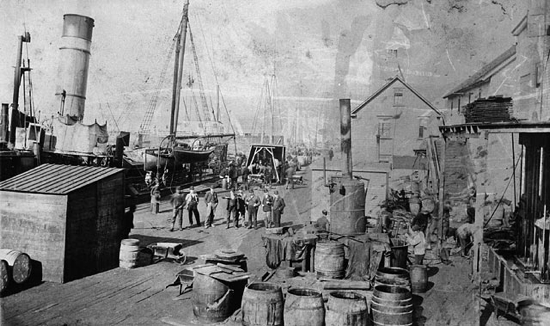 Preparing seal or whale oil for market. Victoria, BC, LAC C-068455